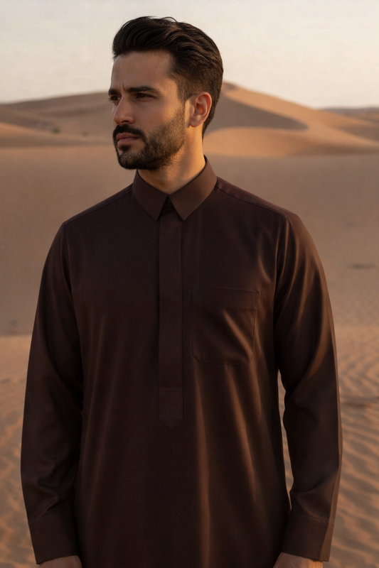 Collared Saudi Thobe – Cashmere Wool Blend